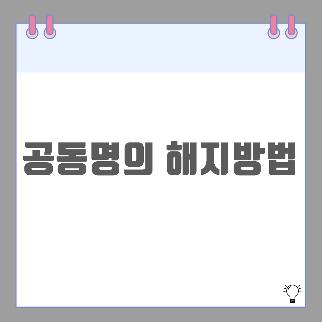 공동명의 해지는 단순한 명의변경이 아니라 법률적 재산이동이 수반되는 절차입니다.